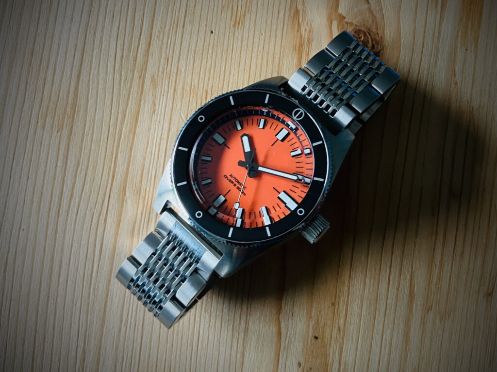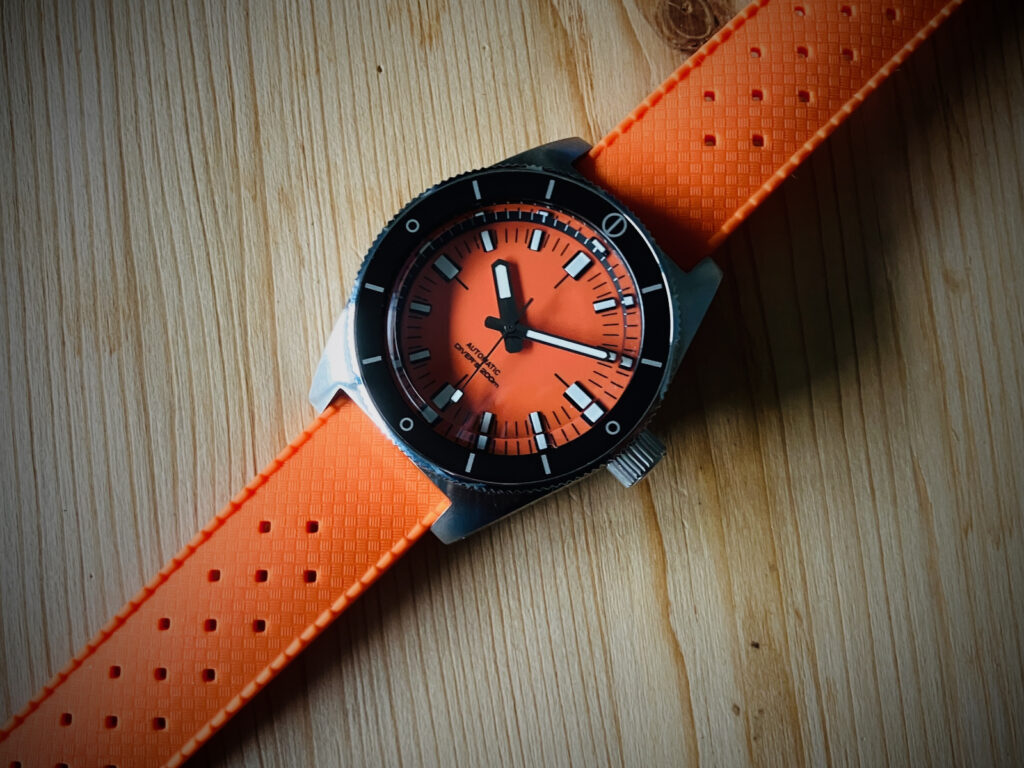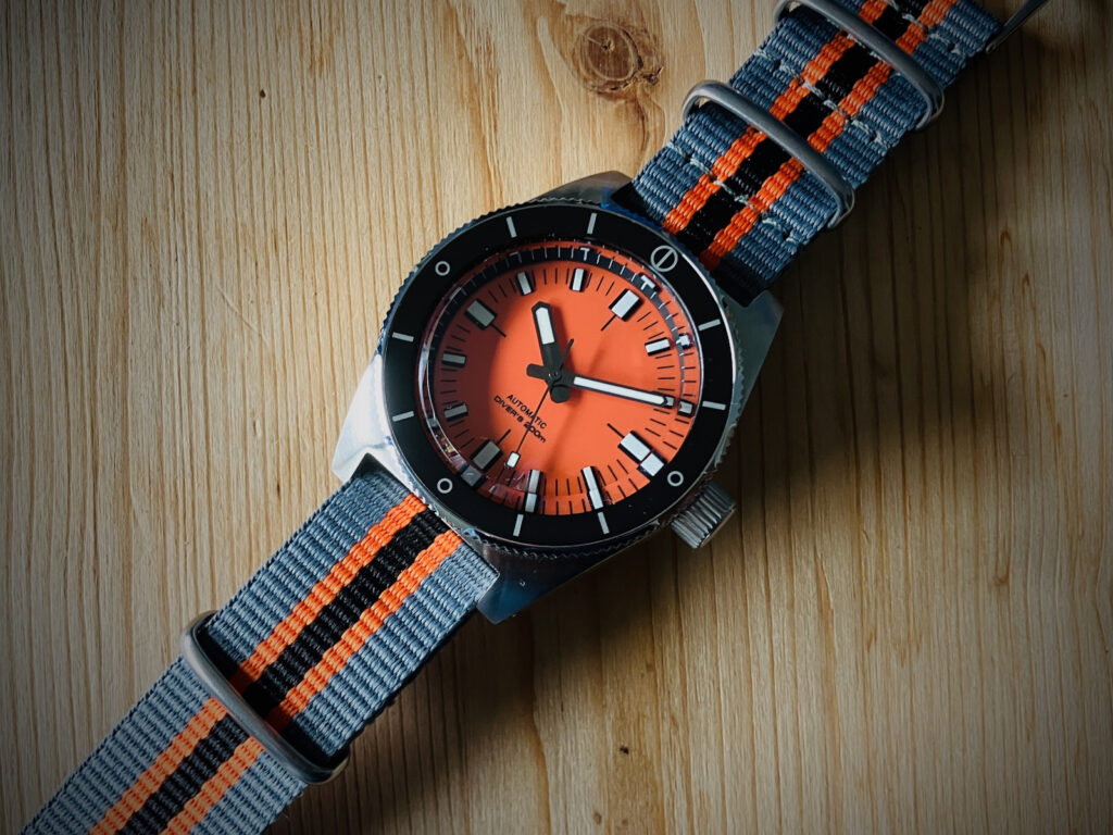 | Zifferblatt | Doxa-Stil orange mit weißen Indizes (28,5mm) |