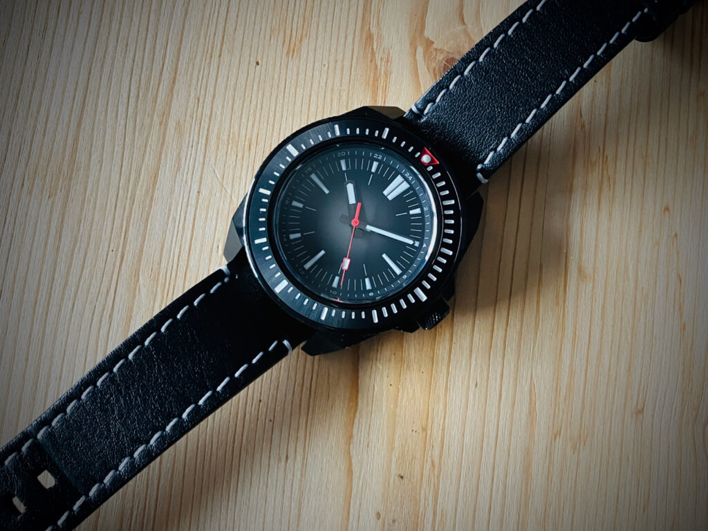 Lünetteninlayschwarz matt mit weißen Indizes und rotem Dreieck